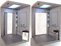 ドアは両開きの開閉式。床面と操作盤(シール式)はそれぞれ